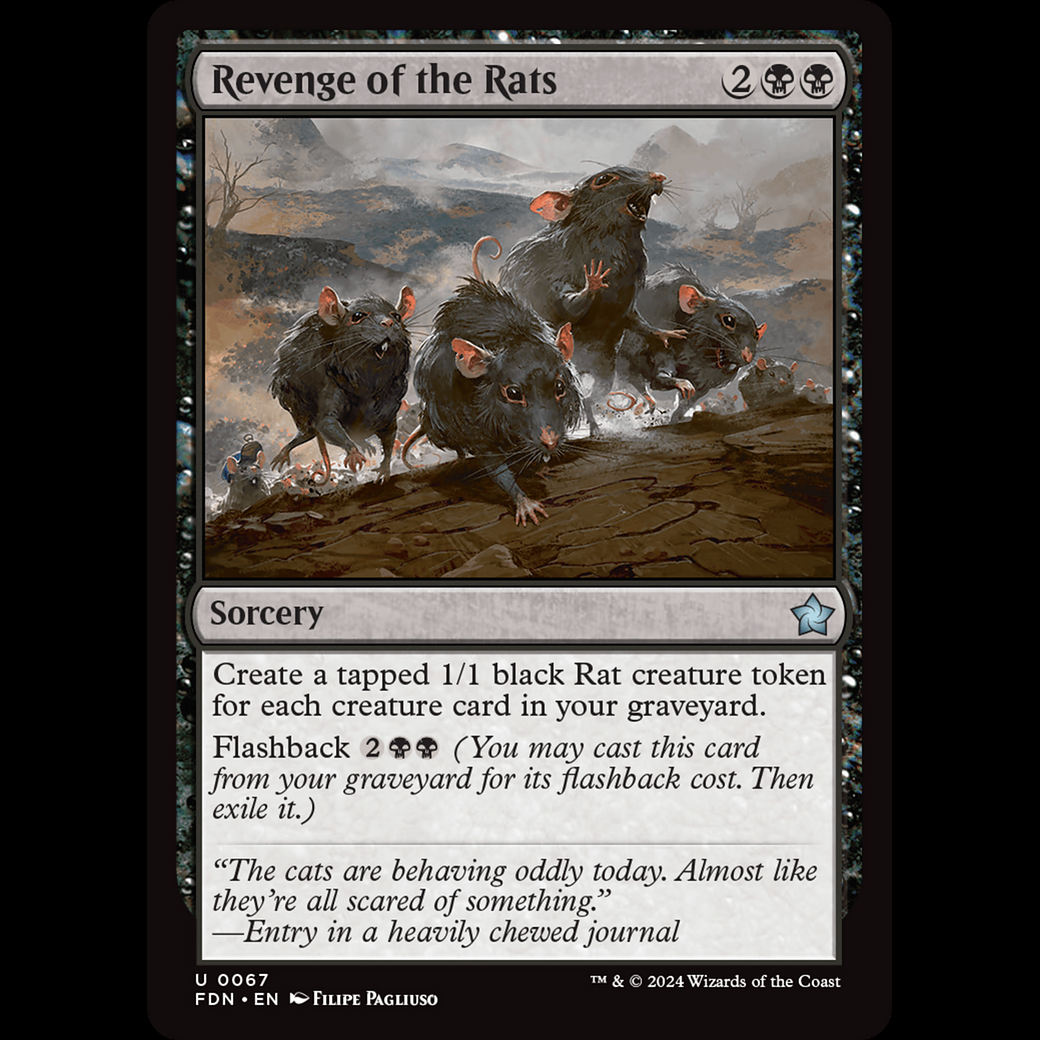 Create a tapped 1/1 black Rat creature token for each creature card in your graveyard.