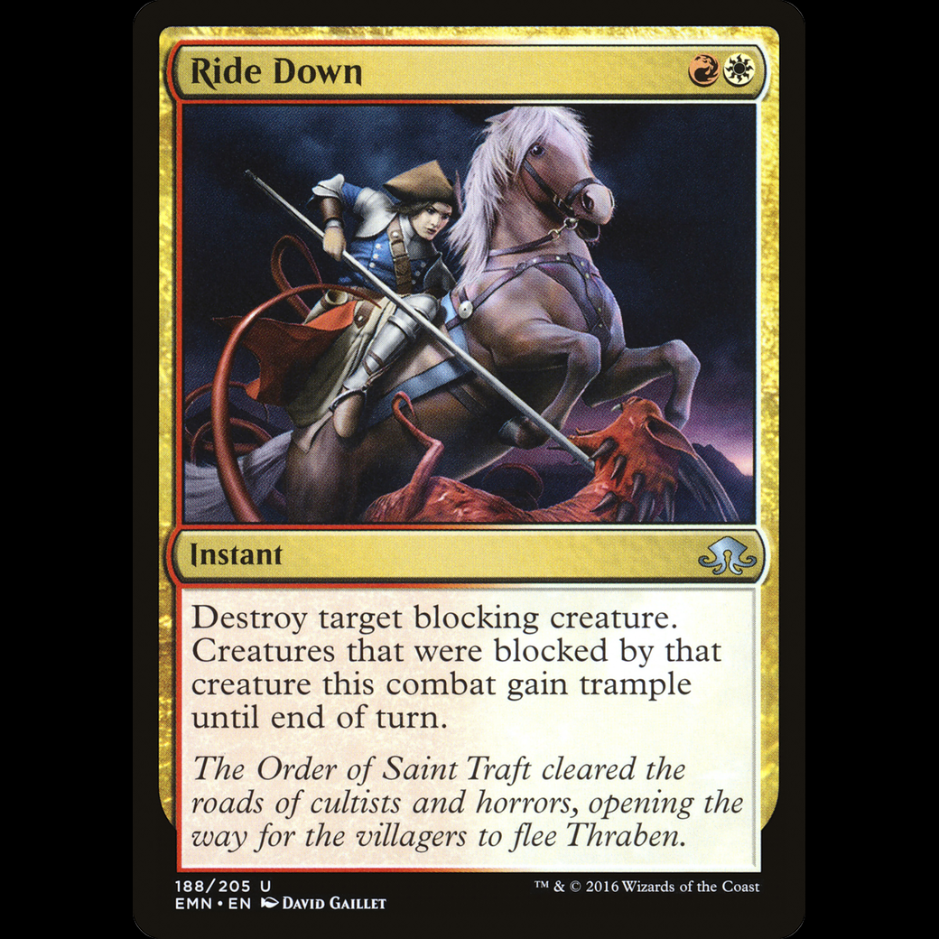 Destroy target blocking creature. Creatures that were blocked by that creature this combat gain trample until end of turn.