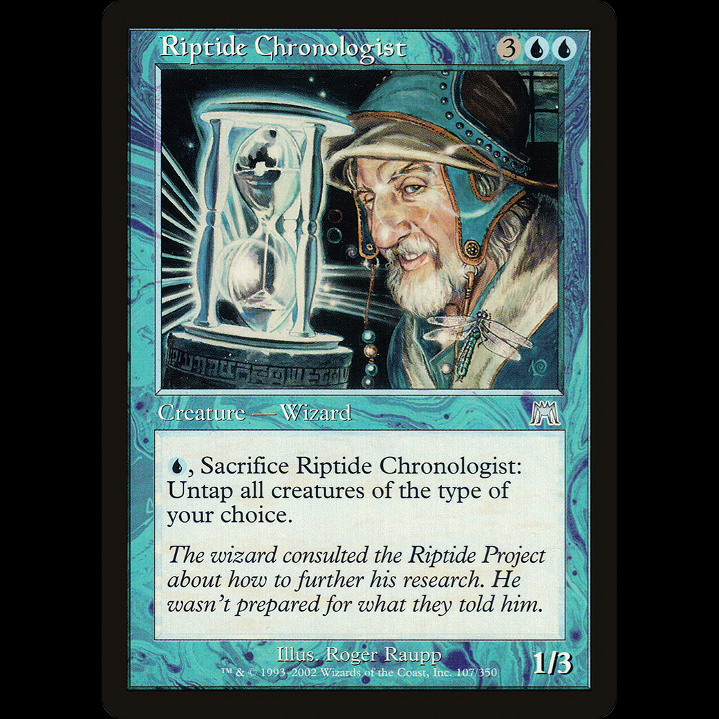 , Sacrifice Riptide Chronologist: Untap all creatures of the creature type of your choice.