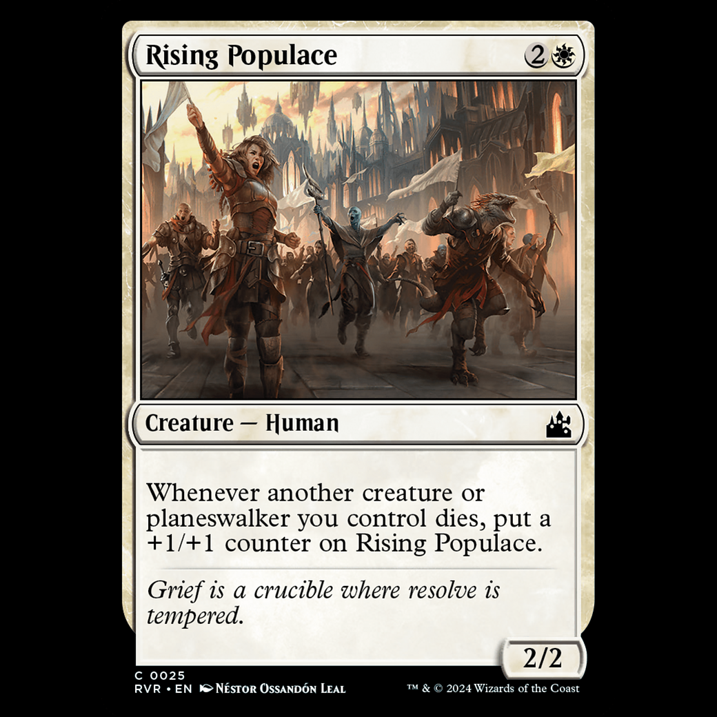 Whenever another creature or planeswalker you control dies, put a +1/+1 counter on Rising Populace.
