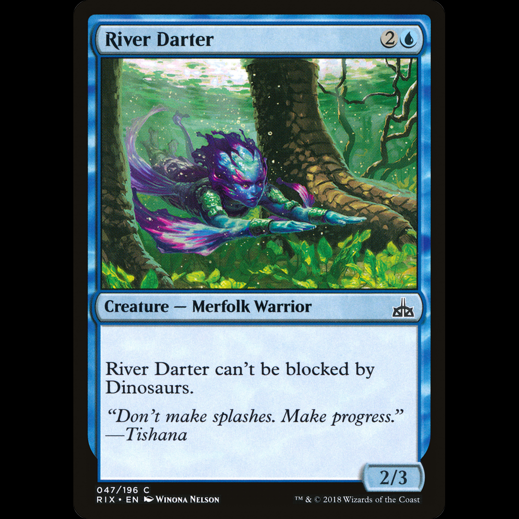 MTG River Darter Rivals of Ixalan rix#47River Darter can't be blocked by Dinosaurs.