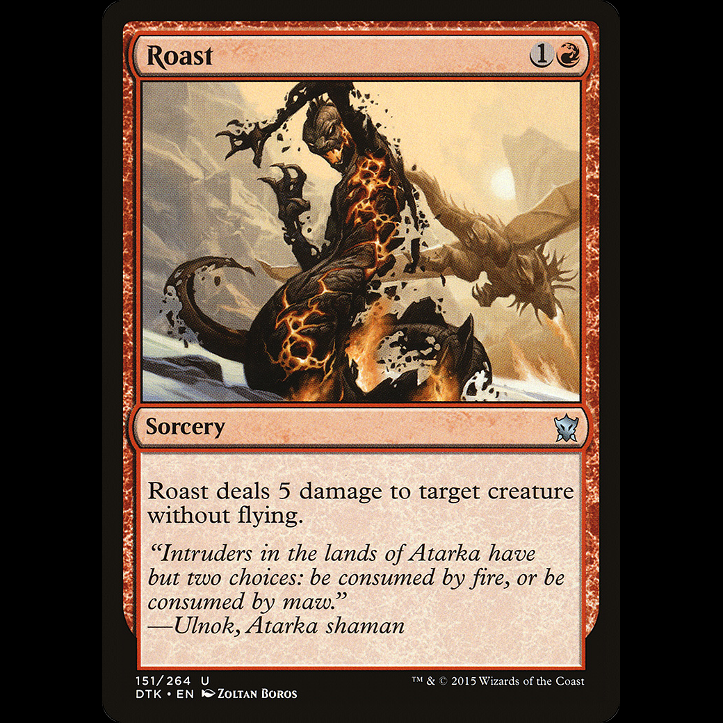 MTG Roast Dragons of TarkirRoast deals 5 damage to target creature without flying.