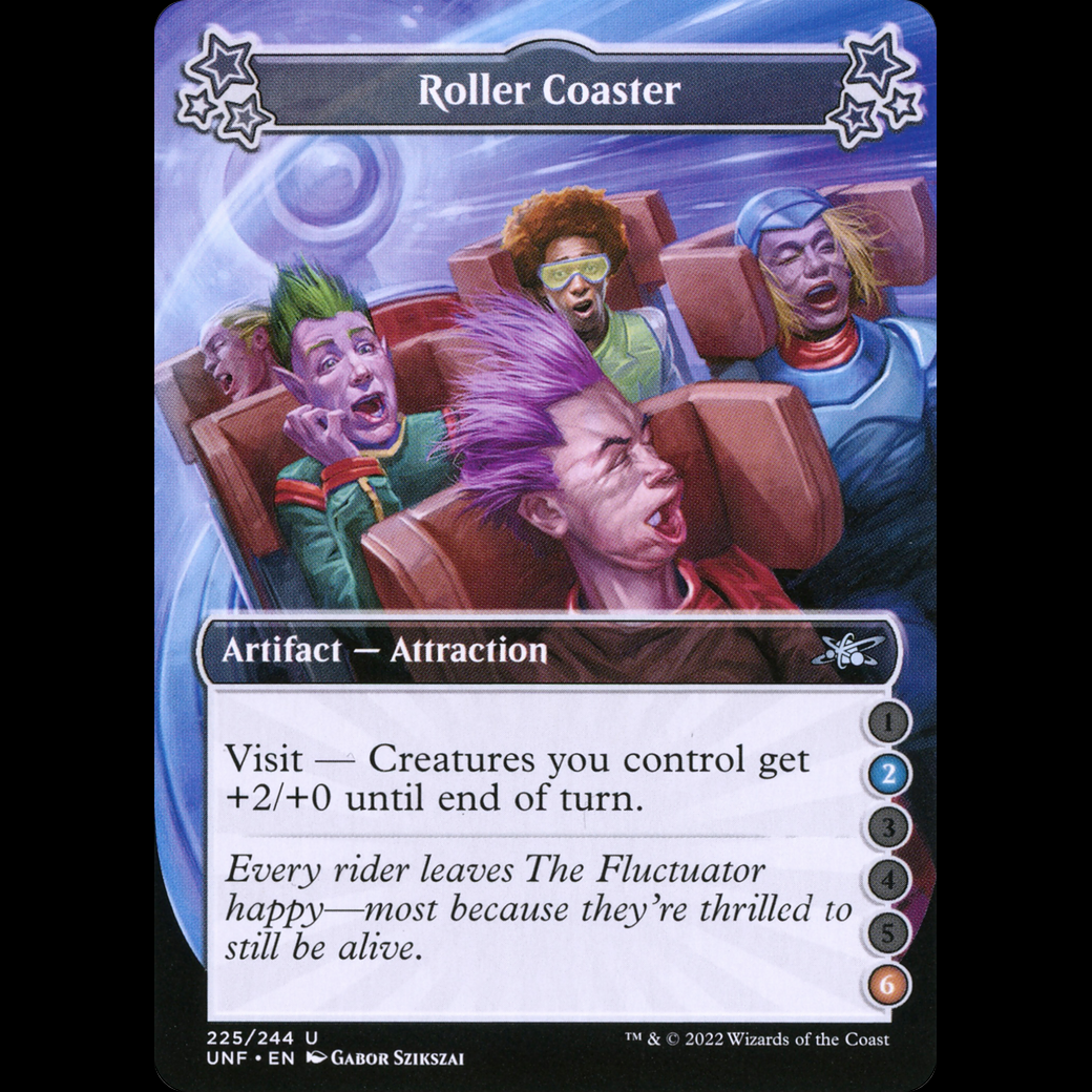 MTG Roller Coaster Unfinity unf#225aVisit — Creatures you control get +2/+0 until end of turn.