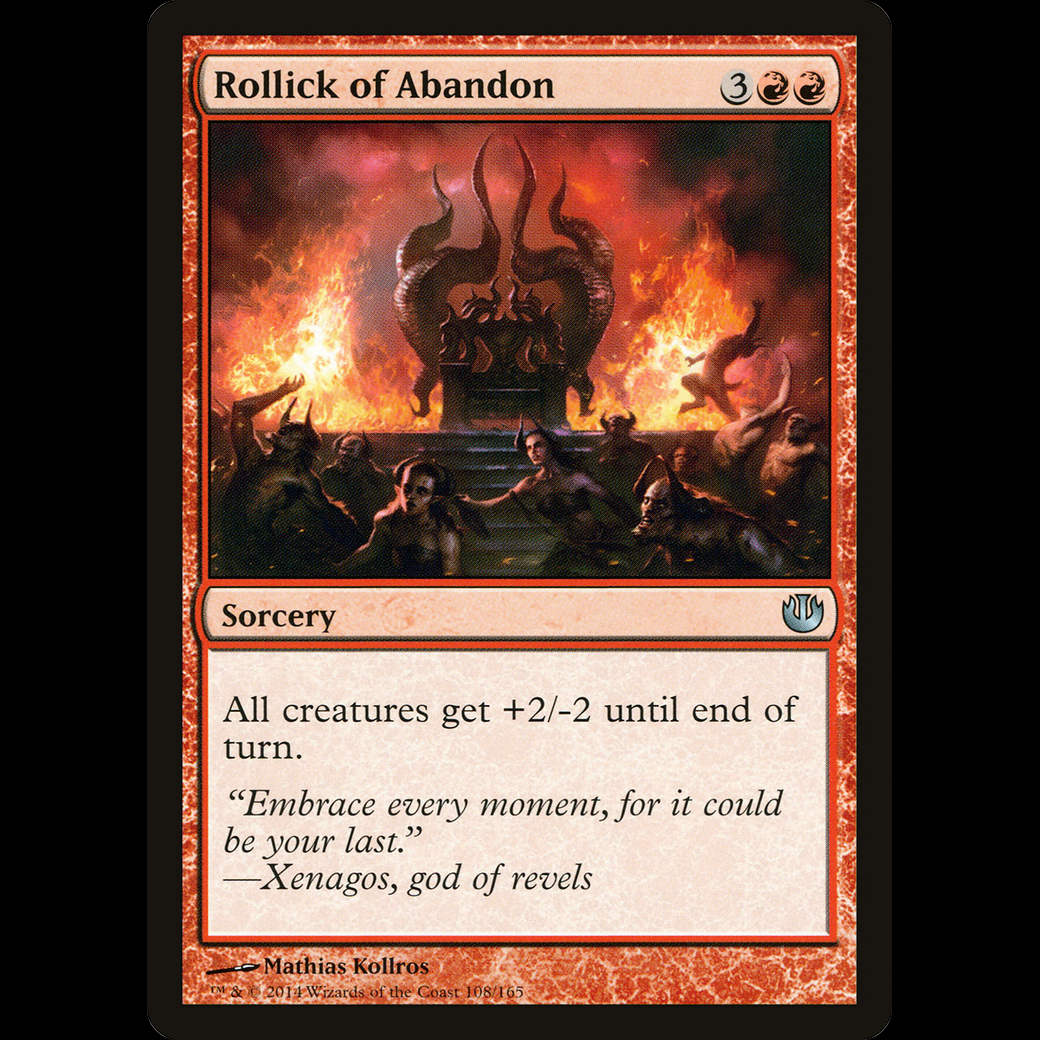 MTG Rollick of Abandon Journey into NyxAll creatures get +2/-2 until end of turn.