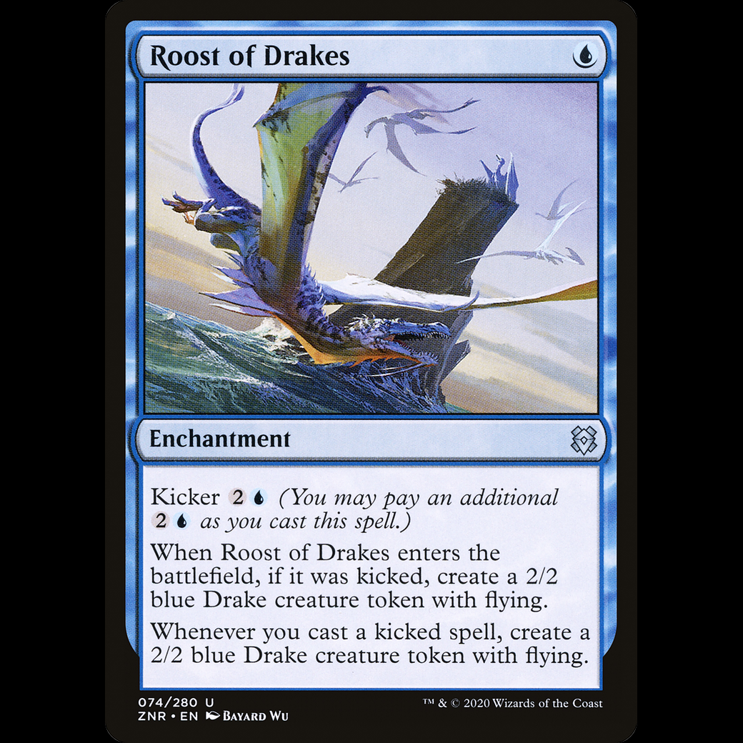 Whenever you cast a kicked spell, create a 2/2 blue Drake creature token with flying.