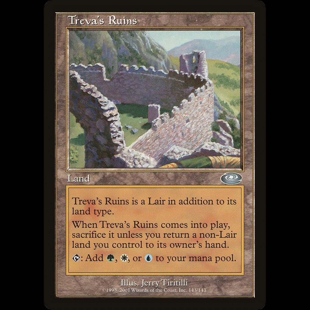 When Treva's Ruins enters the battlefield, sacrifice it unless you return a non-Lair land you control to its owner's hand.