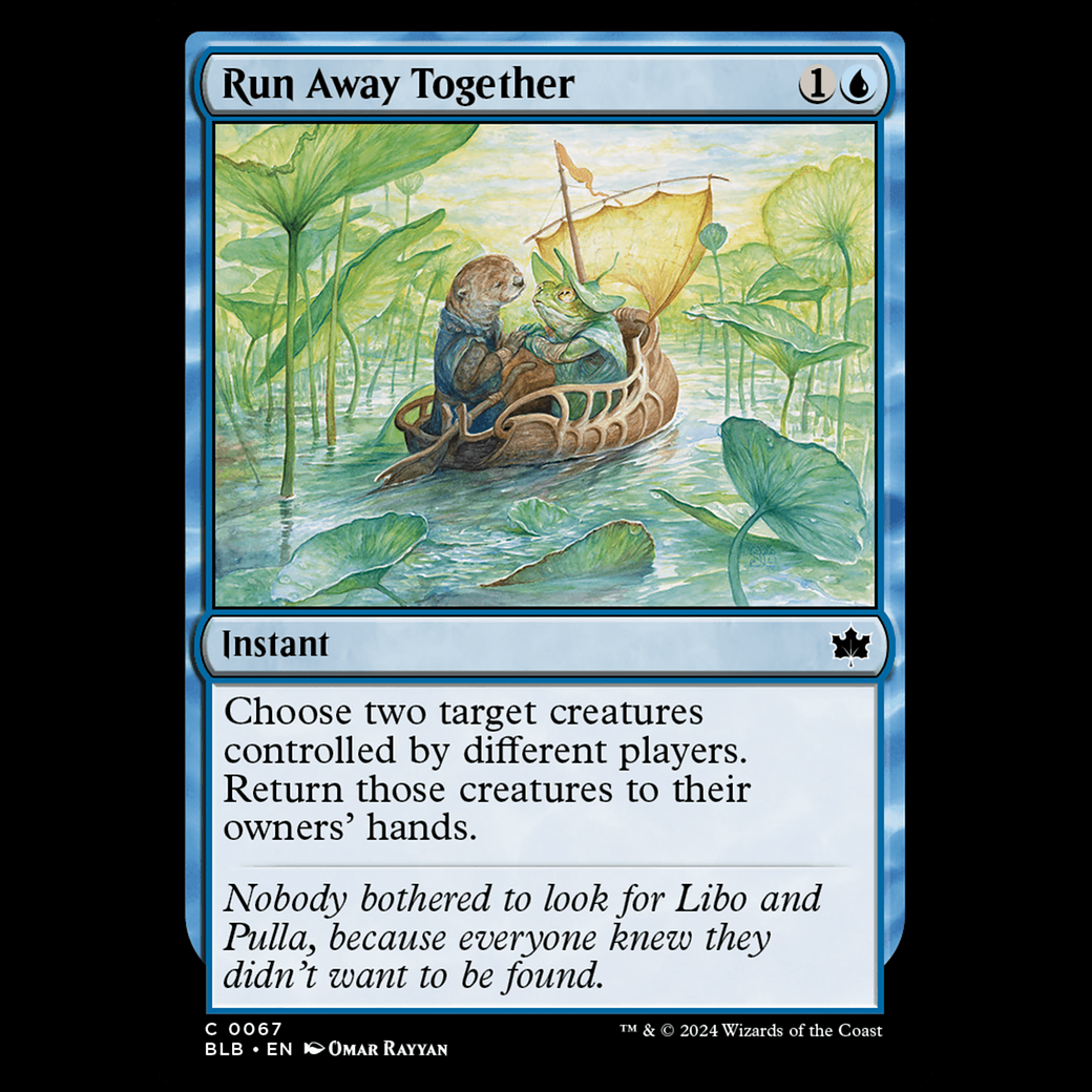 Choose two target creatures controlled by different players. Return those creatures to their owners' hands.