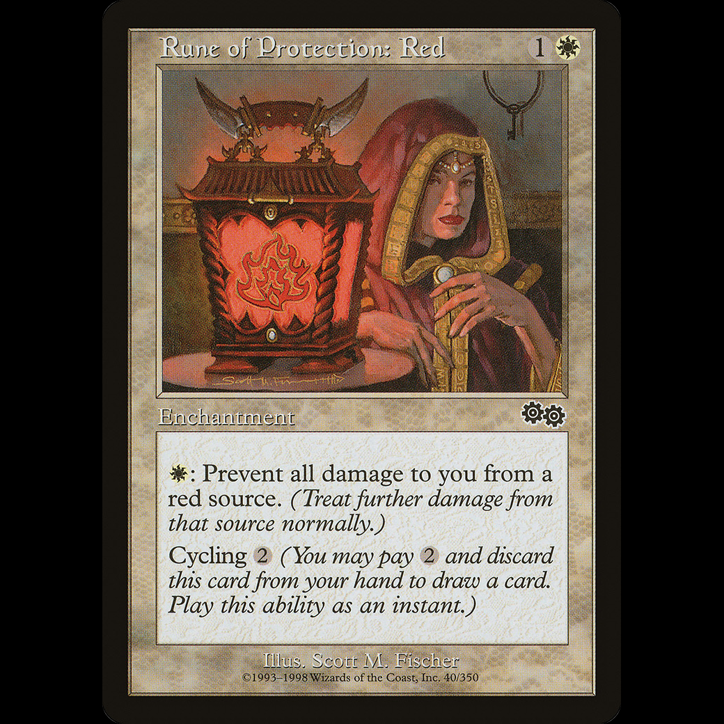: The next time a red source of your choice would deal damage to you this turn, prevent that damage.