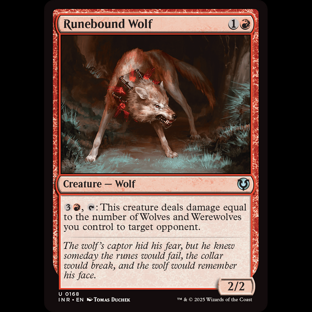 , : Runebound Wolf deals damage equal to the number of Wolves and Werewolves you control to target opponent.