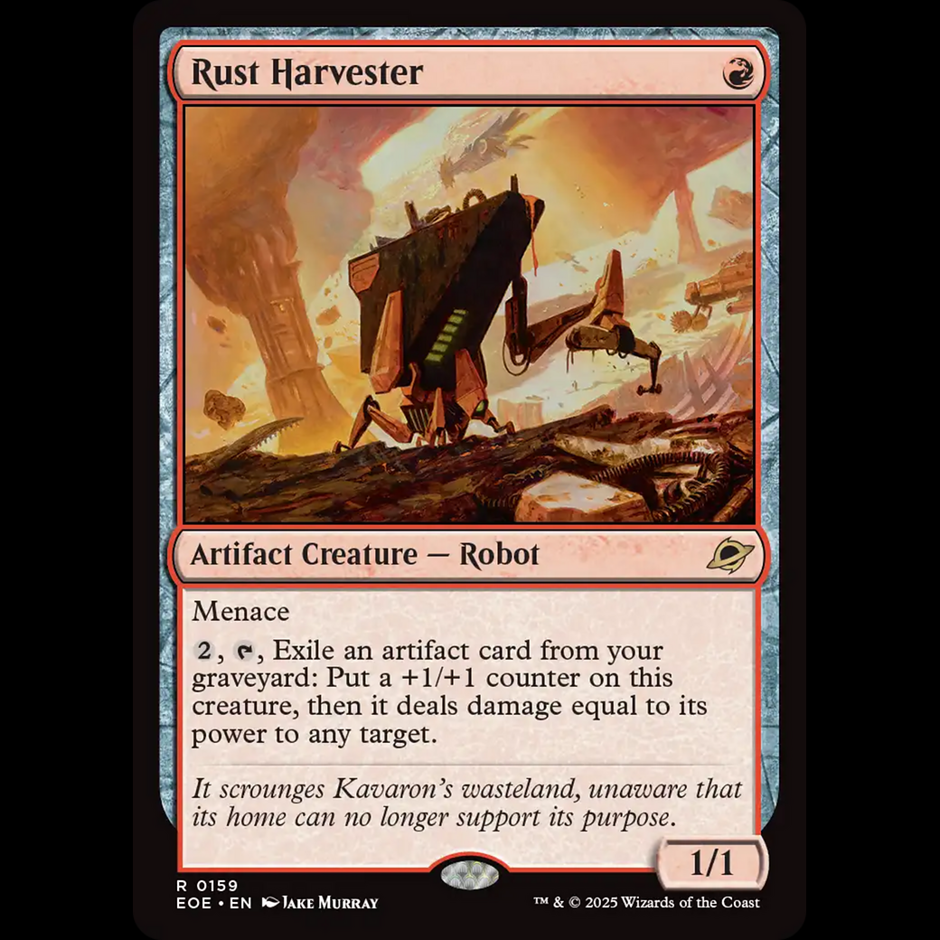 Menace , , Exile an artifact card from your graveyard: Put a +1/+1 counter on this creature, then it deals damage equal to its power to any target.