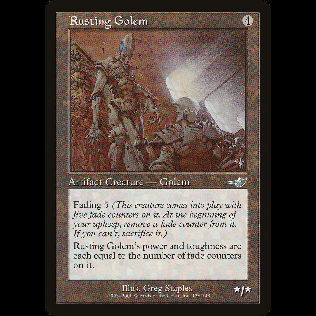 Rusting Golem's power and toughness are each equal to the number of fade counters on it.