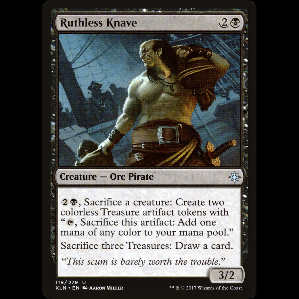 , Sacrifice a creature: Create two Treasure tokens. (They're artifacts with ", Sacrifice this artifact: Add one mana of any color.")