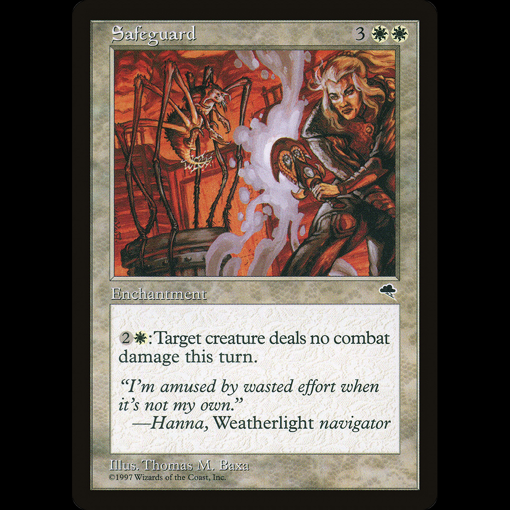 MTG Safeguard Tempest: Prevent all combat damage that would be dealt by target creature this turn.