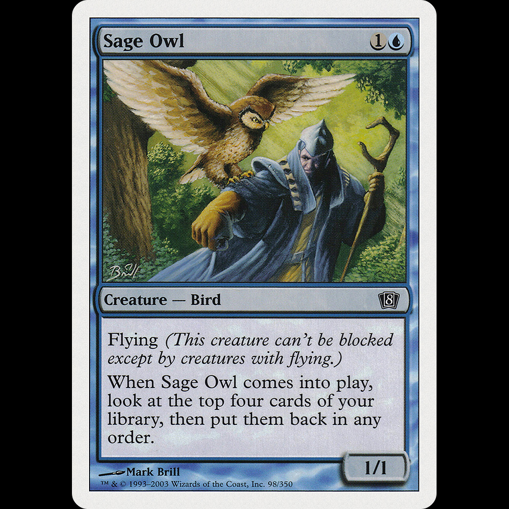 When Sage Owl enters the battlefield, look at the top four cards of your library, then put them back in any order.