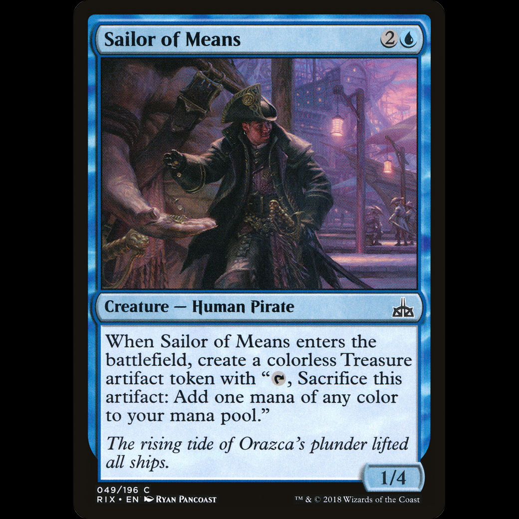 When Sailor of Means enters the battlefield, create a Treasure token. (It's an artifact with ", Sacrifice this artifact: Add one mana of any color.")