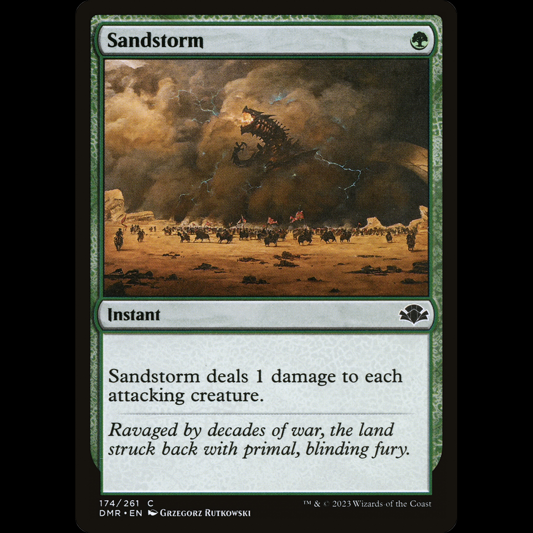MTG Sandstorm Dominaria Remastered dmr#174Sandstorm deals 1 damage to each attacking creature.