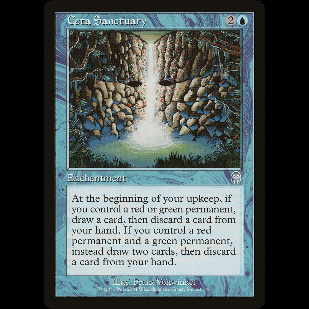 At the beginning of your upkeep, if you control a red or green permanent, draw a card, then discard a card. If you control a red permanent and a green permanent, instead draw two cards, then discard a card.