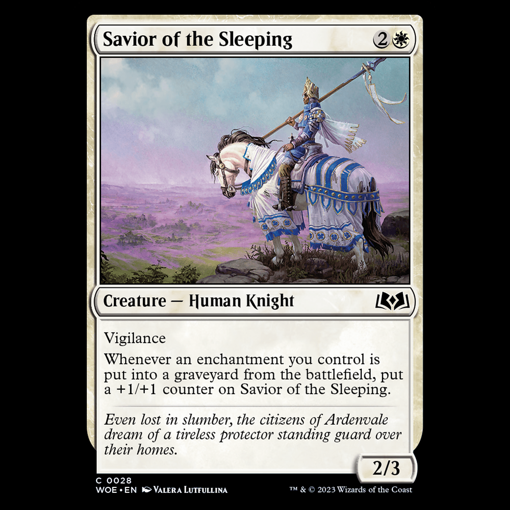 Whenever an enchantment you control is put into a graveyard from the battlefield, put a +1/+1 counter on Savior of the Sleeping.