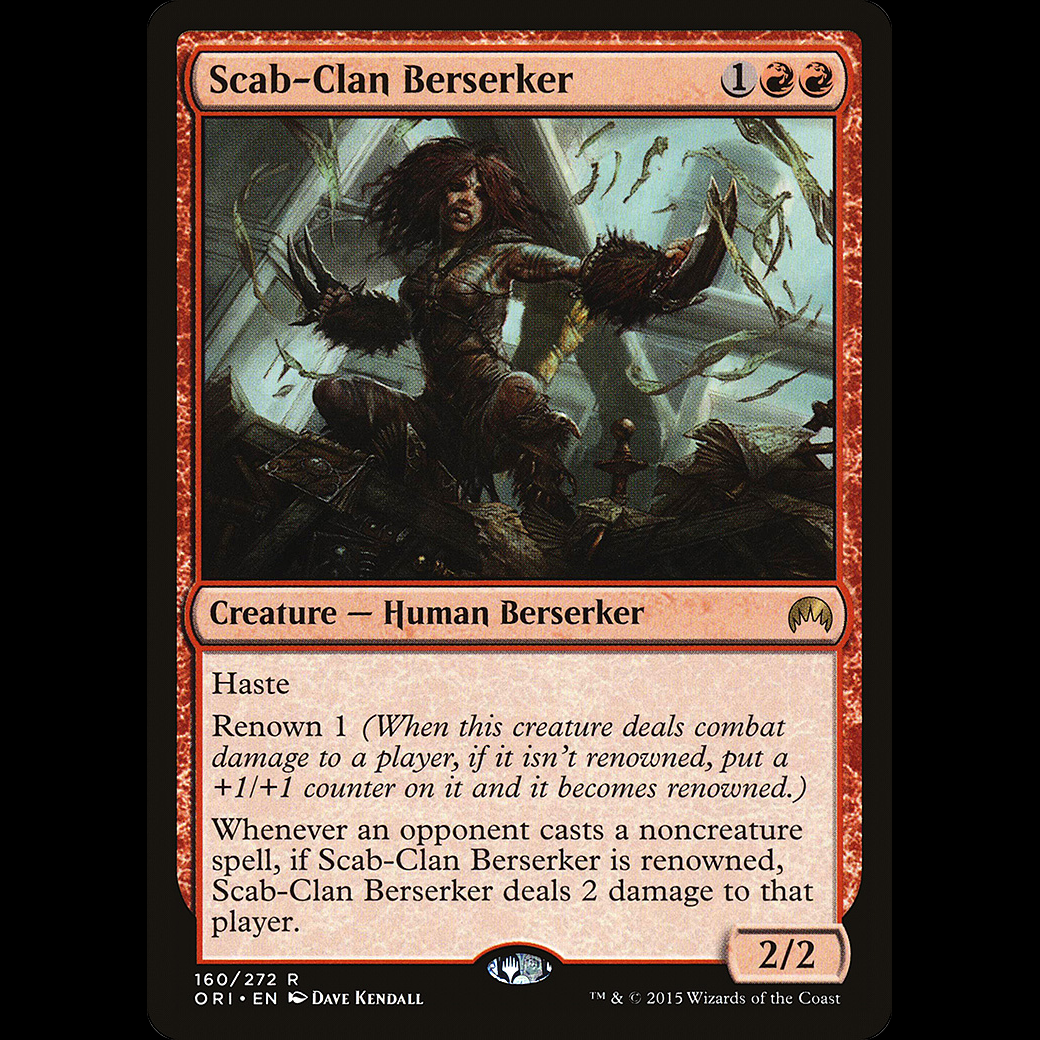 Whenever an opponent casts a noncreature spell, if Scab-Clan Berserker is renowned, Scab-Clan Berserker deals 2 damage to that player.