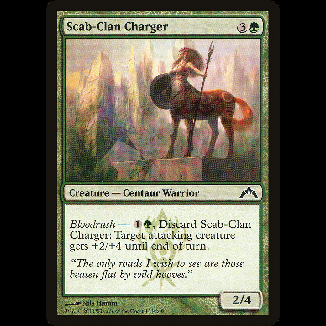 Bloodrush — , Discard Scab-Clan Charger: Target attacking creature gets +2/+4 until end of turn.