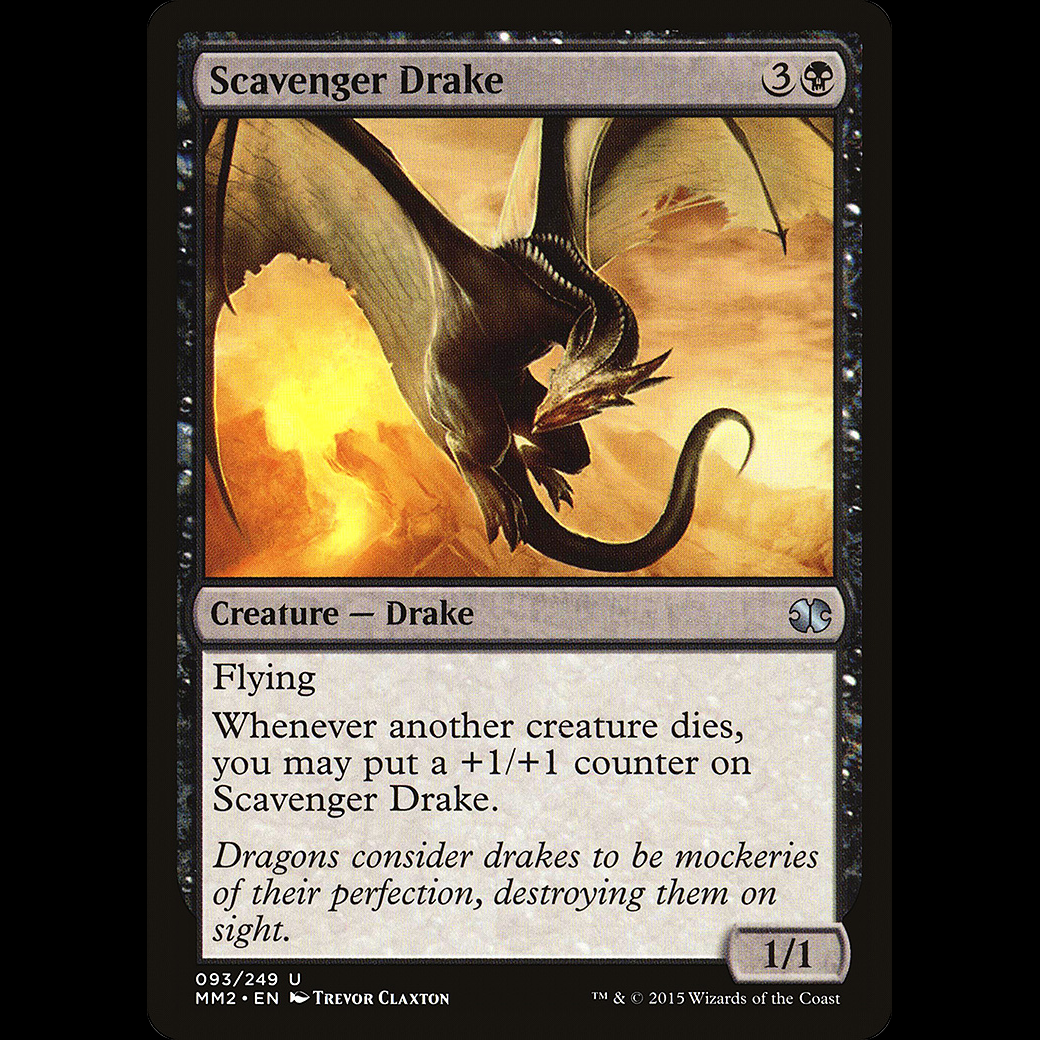 Whenever another creature dies, you may put a +1/+1 counter on Scavenger Drake.