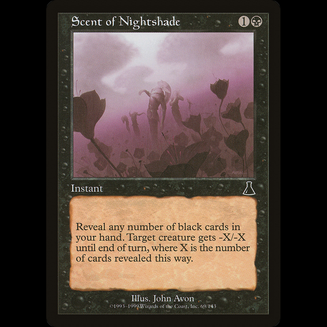 Reveal any number of black cards in your hand. Target creature gets -X/-X until end of turn, where X is the number of cards revealed this way.