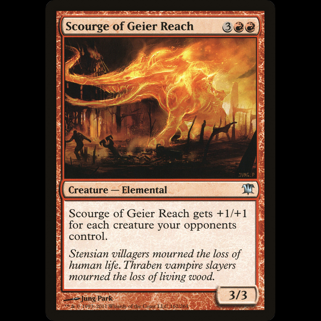 Scourge of Geier Reach gets +1/+1 for each creature your opponents control.