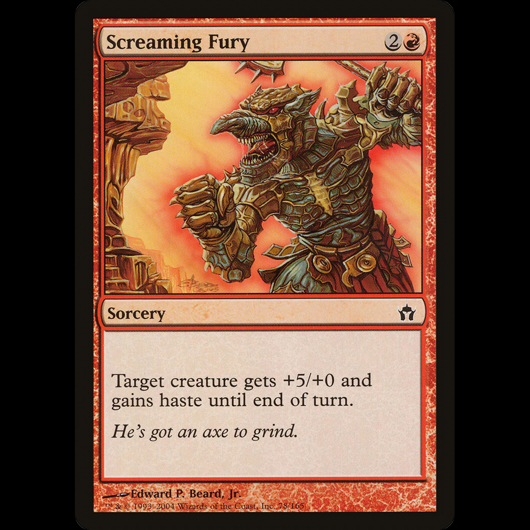 MTG Screaming Fury Fifth DawnTarget creature gets +5/+0 and gains haste until end of turn.