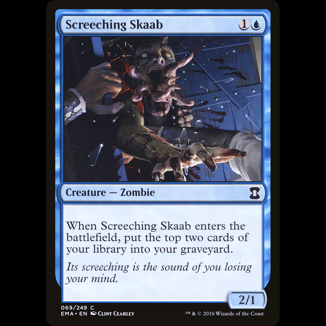 MTG Screeching Skaab Eternal MastersWhen Screeching Skaab enters the battlefield, mill two cards.