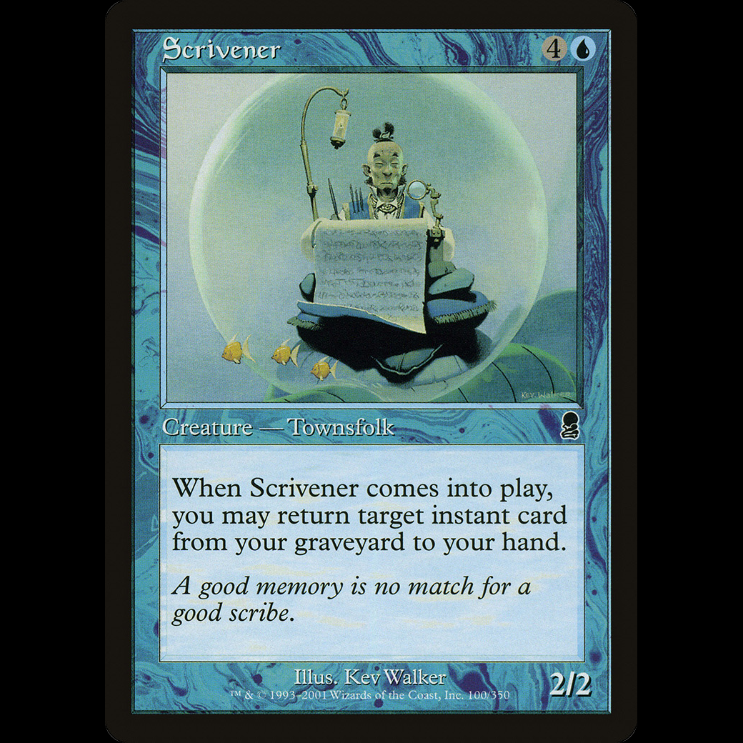 When Scrivener enters the battlefield, you may return target instant card from your graveyard to your hand.