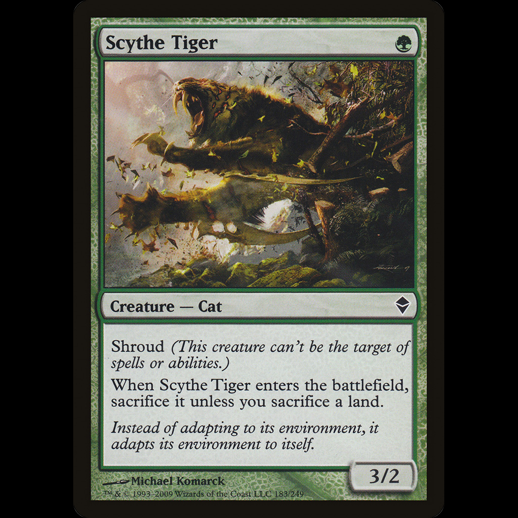 When Scythe Tiger enters the battlefield, sacrifice it unless you sacrifice a land.