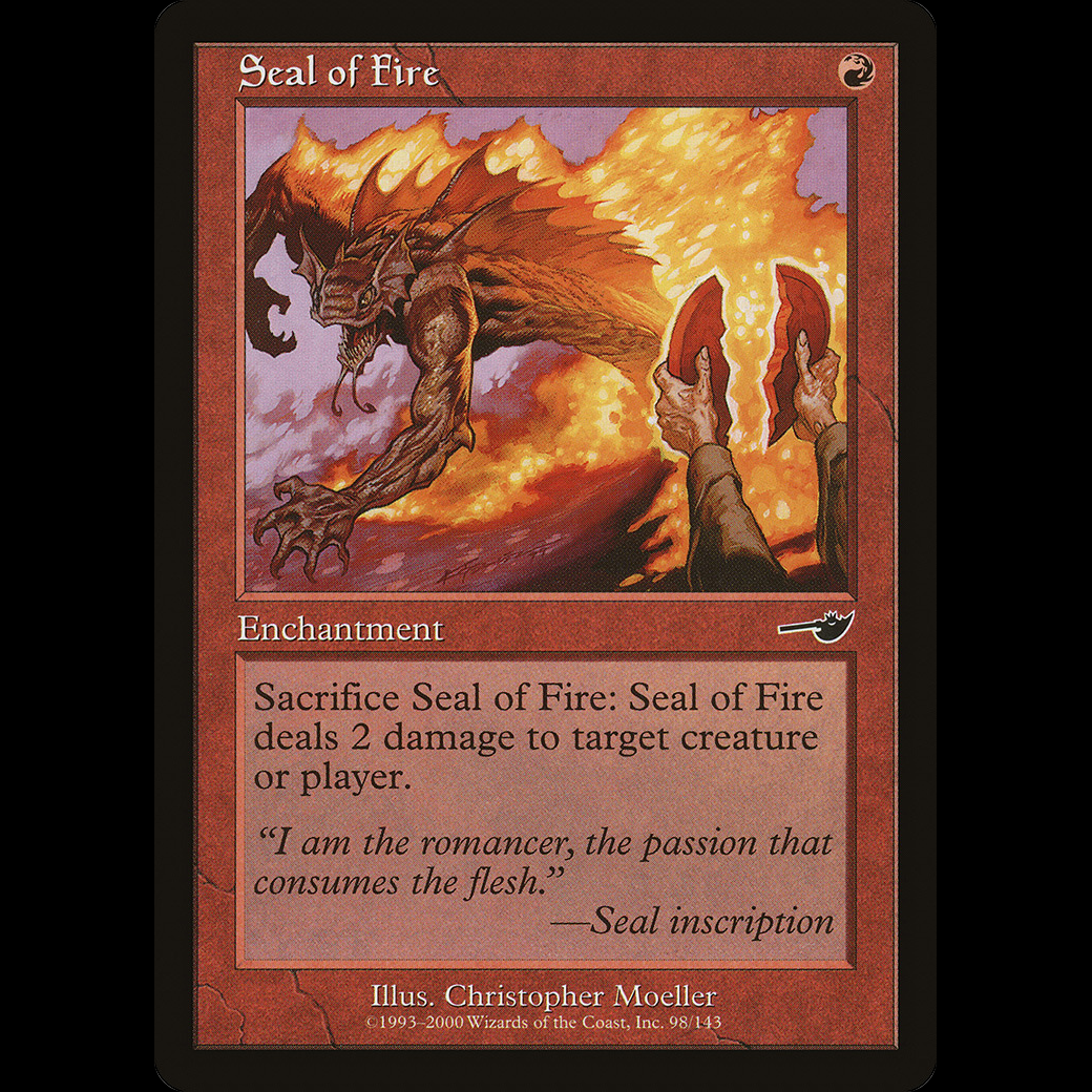 MTG Seal of Fire Nemesis -HPSacrifice Seal of Fire: It deals 2 damage to any target.