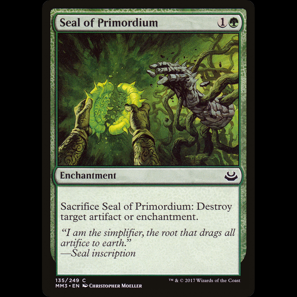 Sacrifice Seal of Primordium: Destroy target artifact or enchantment.