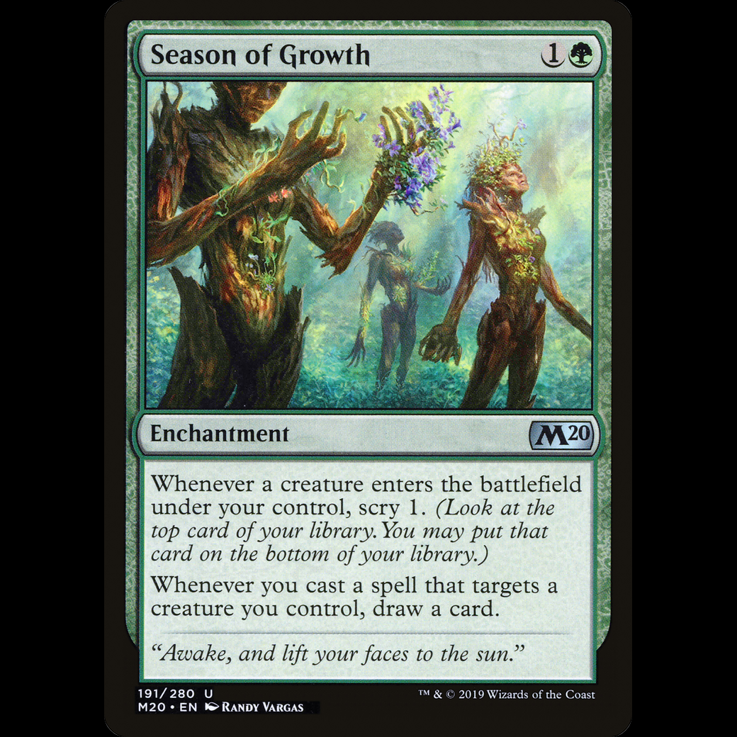 Whenever a creature you control enters, scry 1. (Look at the top card of your library. You may put that card on the bottom.)
