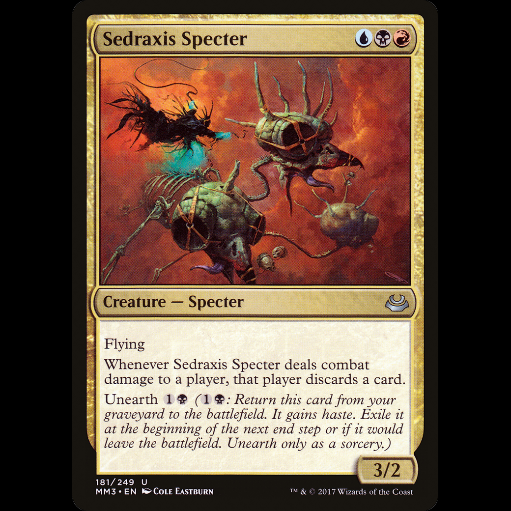 Whenever Sedraxis Specter deals combat damage to a player, that player discards a card.