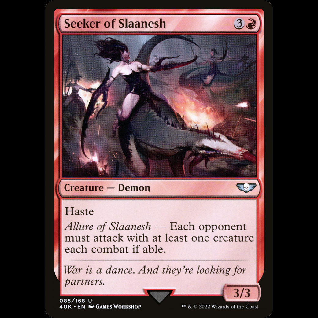 MTG Seeker of Slaanesh Warhammer 40,000 Commander 40k#85 Haste Allure of Slaanesh — Each opponent must attack with at least one creature each combat if able.