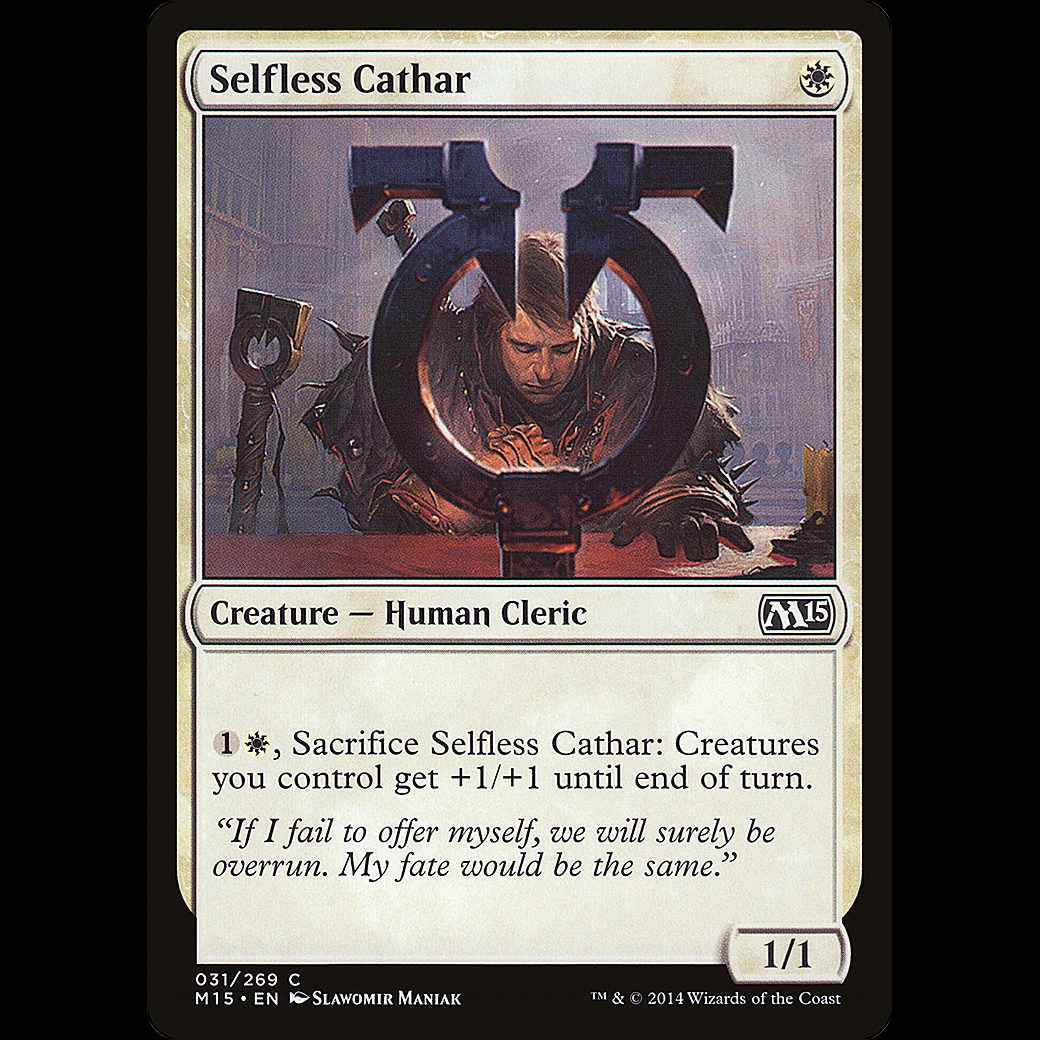 , Sacrifice Selfless Cathar: Creatures you control get +1/+1 until end of turn.