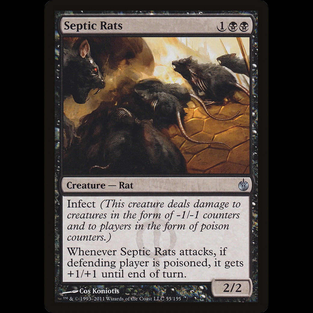Whenever Septic Rats attacks, if defending player is poisoned, it gets +1/+1 until end of turn.
