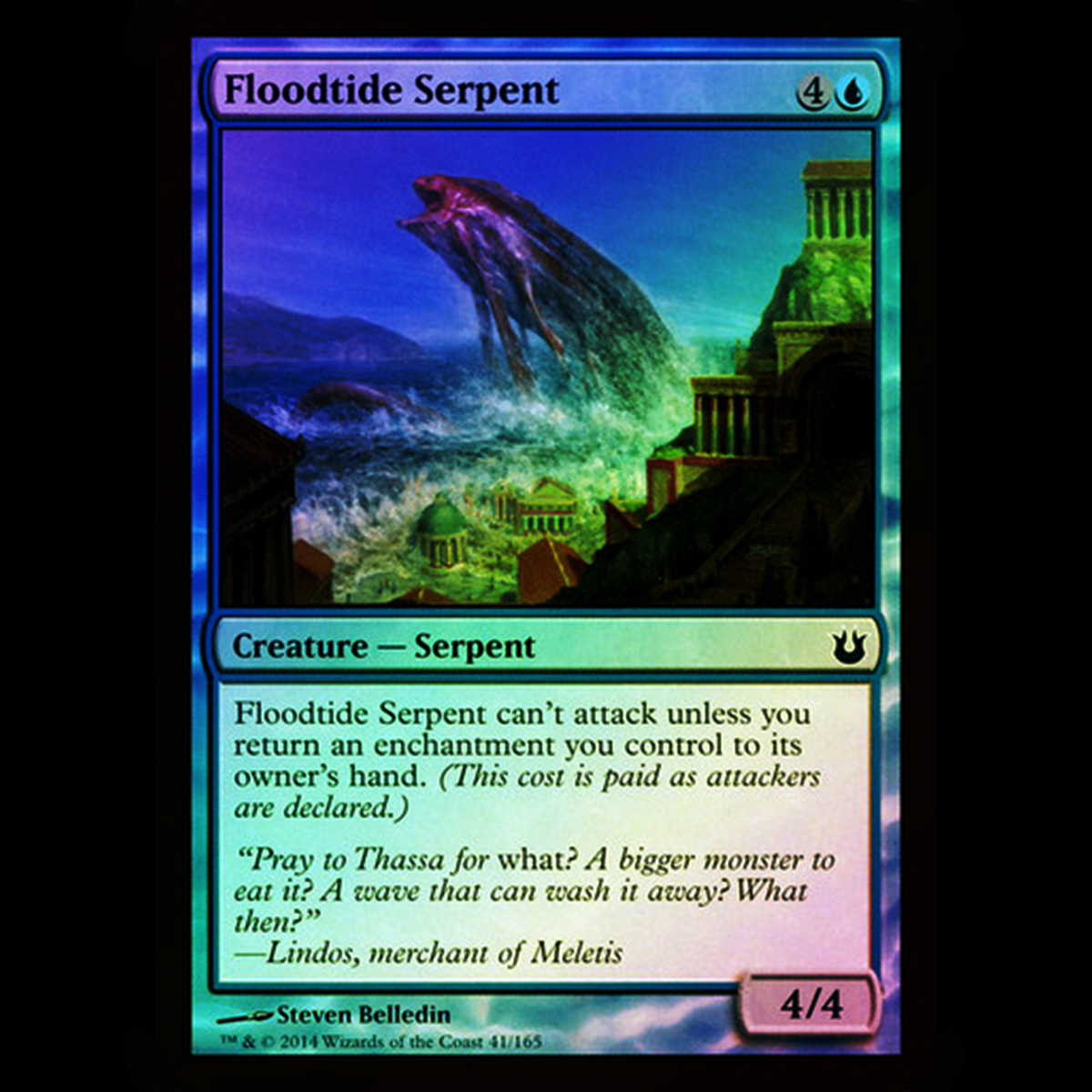 Floodtide Serpent can't attack unless you return an enchantment you control to its owner's hand. (This cost is paid as attackers are declared.)