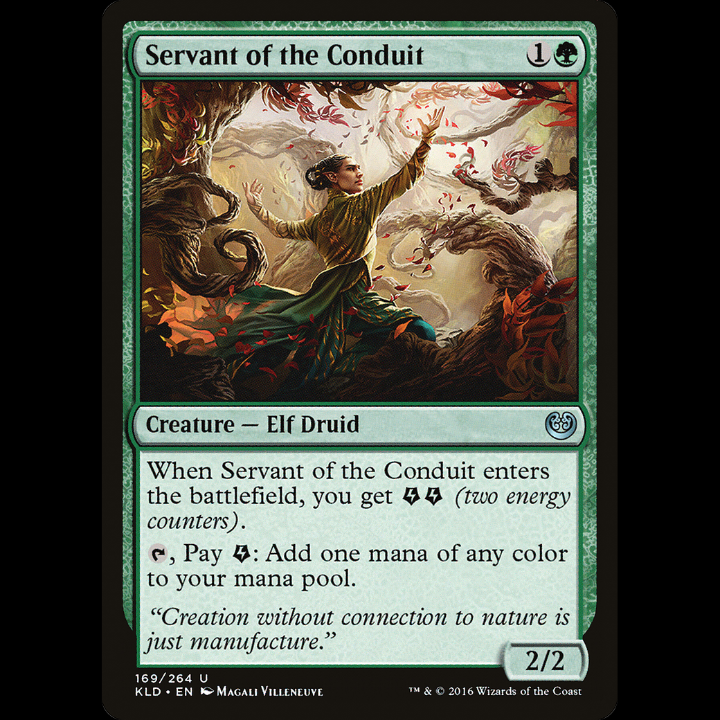 When Servant of the Conduit enters the battlefield, you get (two energy counters).