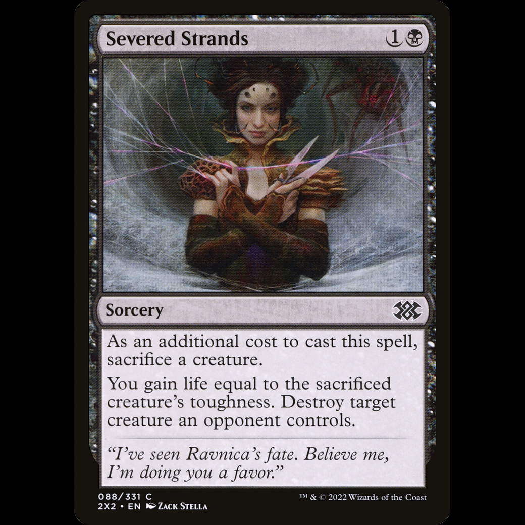 You gain life equal to the sacrificed creature's toughness. Destroy target creature an opponent controls.