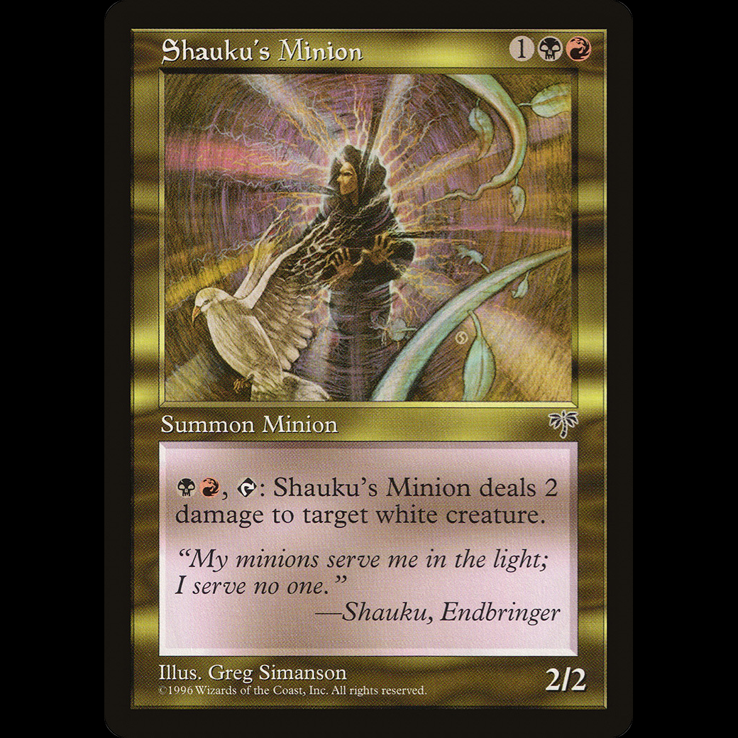MTG Shauku's Minion Mirage, : Shauku's Minion deals 2 damage to target white creature.