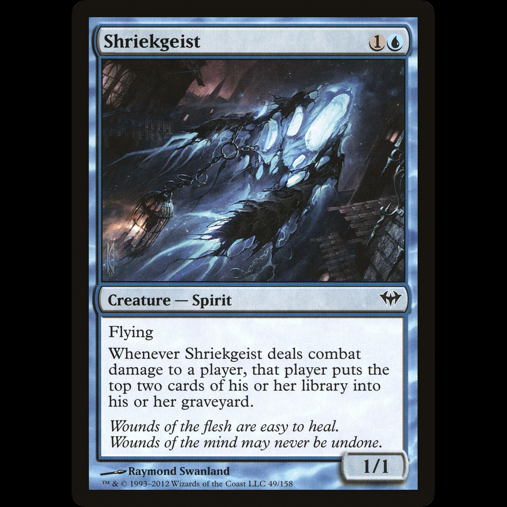 Whenever Shriekgeist deals combat damage to a player, that player mills two cards.