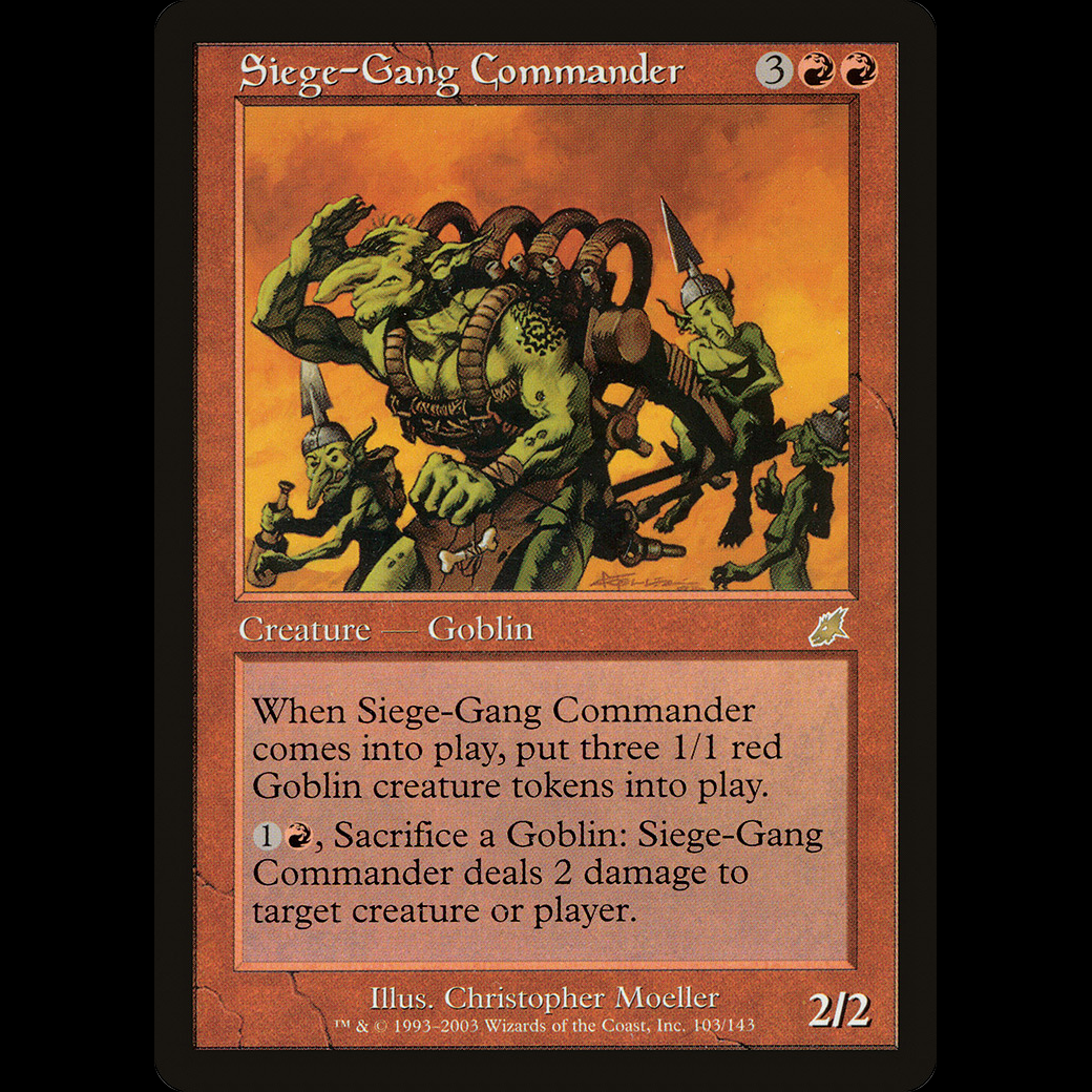 When this creature enters, create three 1/1 red Goblin creature tokens.