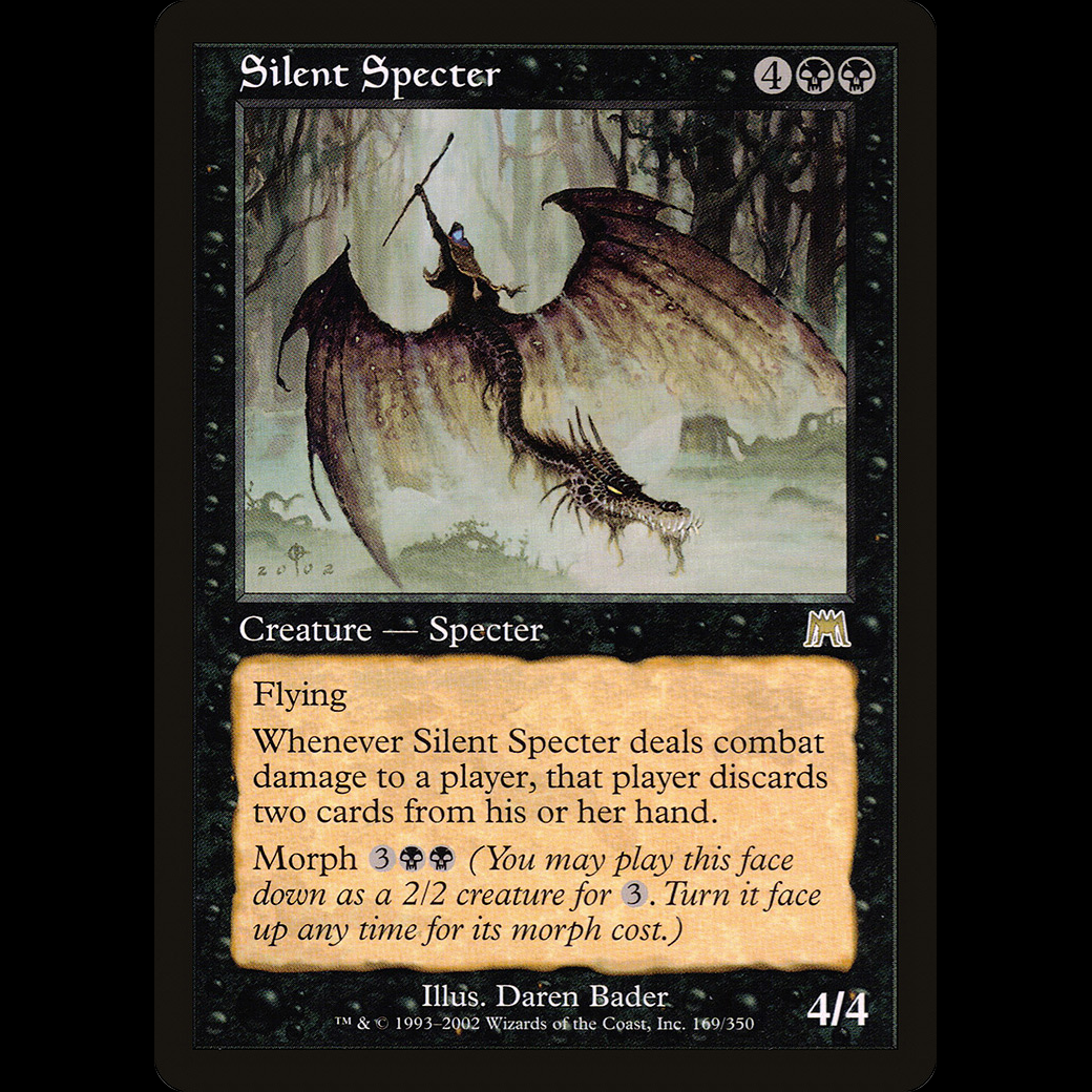 Whenever Silent Specter deals combat damage to a player, that player discards two cards.