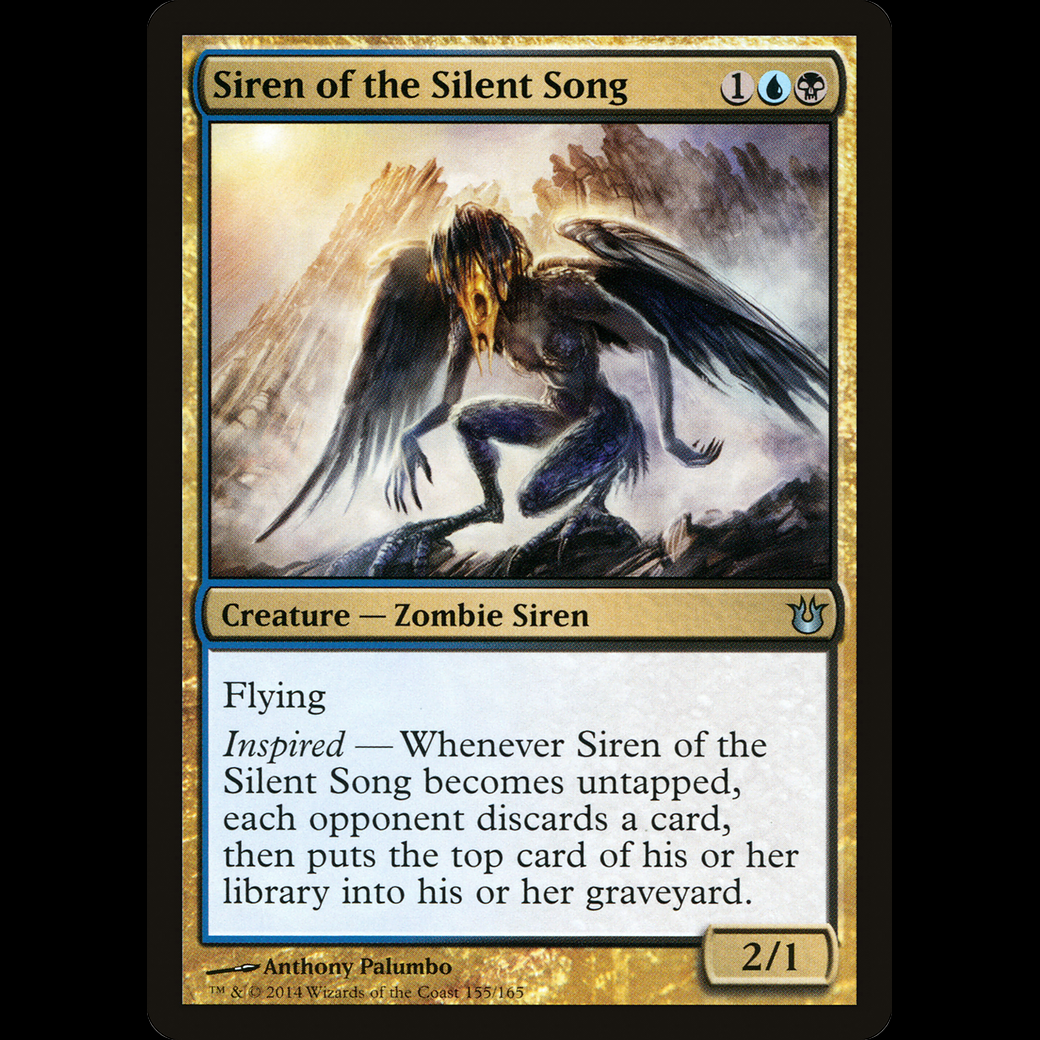 Inspired — Whenever Siren of the Silent Song becomes untapped, each opponent discards a card, then each opponent mills a card.