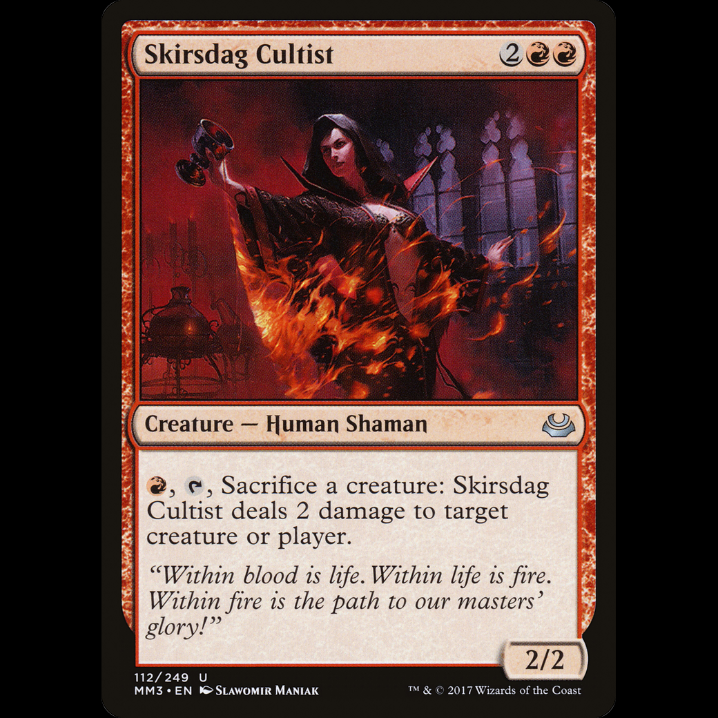 , , Sacrifice a creature: Skirsdag Cultist deals 2 damage to any target.