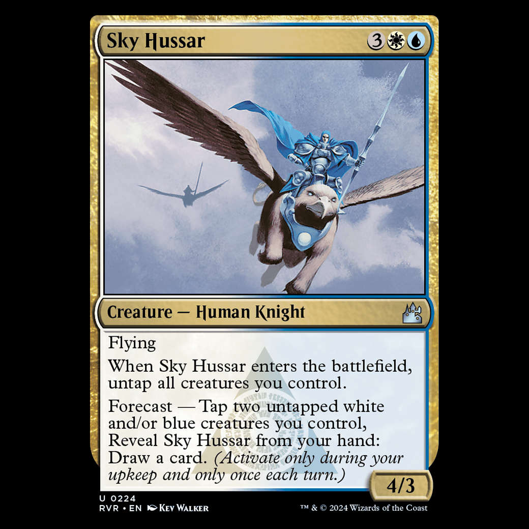 Forecast — Tap two untapped white and/or blue creatures you control, Reveal Sky Hussar from your hand: Draw a card. (Activate only during your upkeep and only once each turn.)