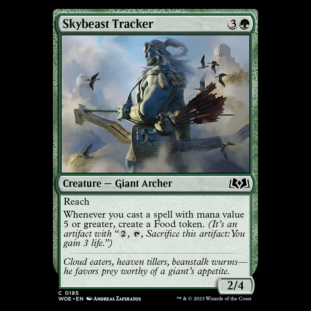 Whenever you cast a spell with mana value 5 or greater, create a Food token. (It's an artifact with ", , Sacrifice this artifact: You gain 3 life.")