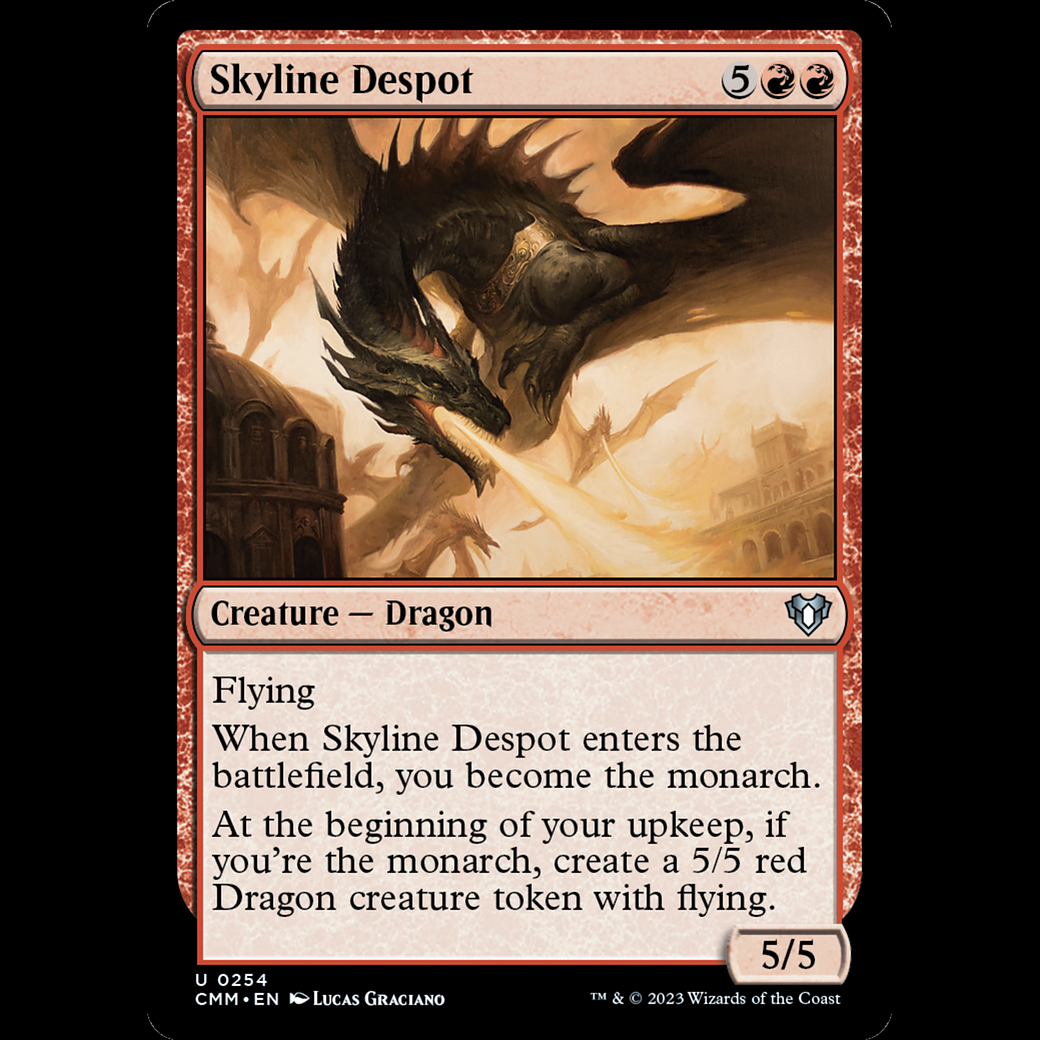At the beginning of your upkeep, if you're the monarch, create a 5/5 red Dragon creature token with flying.